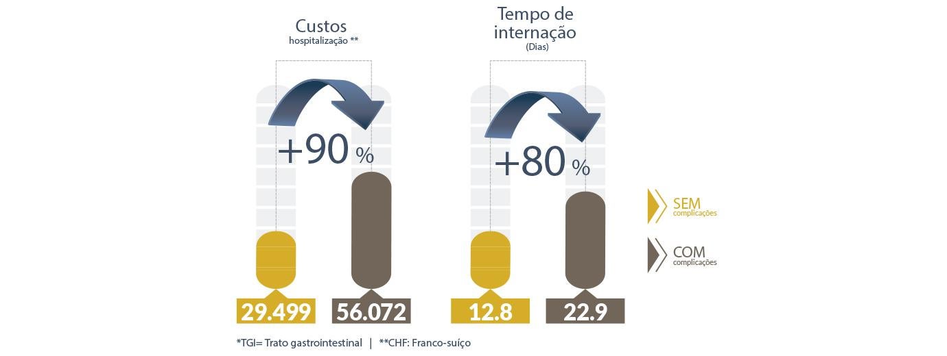 Cirurgias de grande porte, como as oncológicas do TGI*, apresentam taxas elevadas de complicações. 3,4