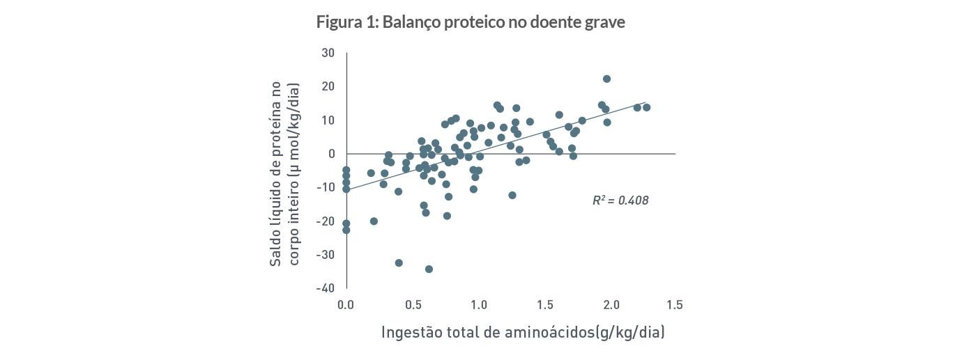 A grande dúvida que fica é se todo o nitrogênio ingerido é realmente incorporado no organismo dos pacientes. Um estudo recente mostrou que os doentes graves são capazes sim, de utilizar maiores quantidades de aminoácidos e melhorar o seu balanço nitrogenado. Em uma análise de cinética de proteína com aminoácidos marcados, é possível observar que quanto maior a oferta proteica, mais positivo foi o balanço proteico (figura 1).8